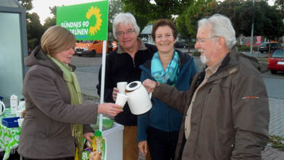 Für die letzten Tage vor der Bundestagswahl haben sich die Eutiner Grünen eine Aktion ausgedacht, die bei den Ostholsteiner Pendlern gut ankam: Ab 5.45 Uhr verteilten die Grünen gemeinsam mit ihrer Direktkandidatin Marlies Fritzen fair gehandelten Bio-Kaffee am Eutiner Bahnhof.
