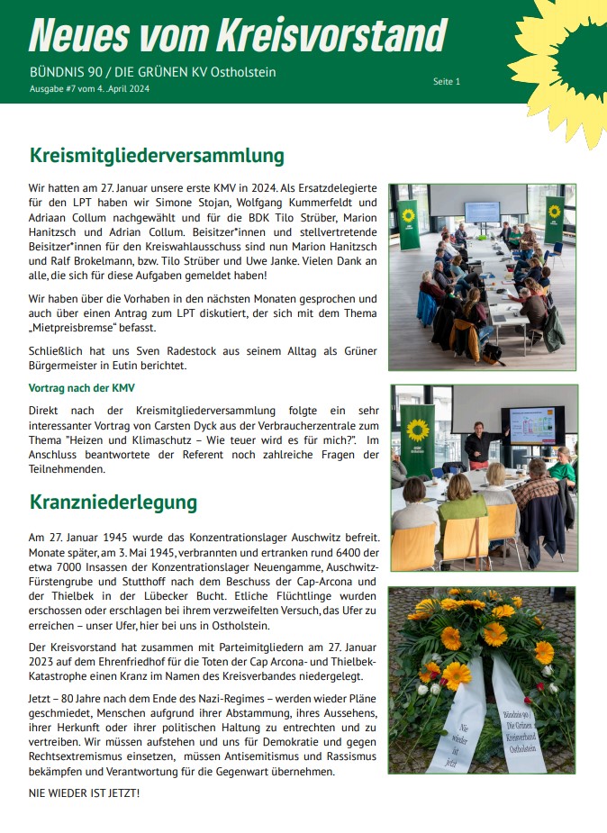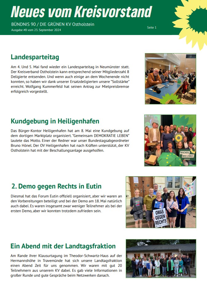 Der Kreisverband ruft dazu auf, sich weiterhin aktiv für Demokratie und gegen Rechtsextremismus zu engagieren. Die Grünen Ostholstein werden auch künftig Demonstrationen und Initiativen unterstützen, die sich für eine offene und tolerante Gesellschaft einsetzen.