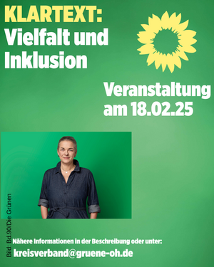 Der Kreisverband Ostholstein von Bündnis 90/Die Grünen veranstaltet am 18. Februar 2025 eine interaktive Gesprächsrunde zum Thema "Vielfalt und Inklusion". Die Veranstaltung bietet eine Plattform für den direkten Austausch zwischen Bürger*innen, Expert*innen und Politiker*innen.
