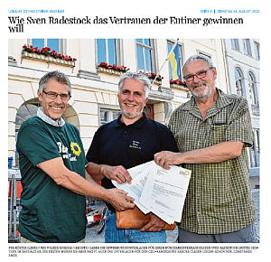 Unsere Vorstandssprecher Per Köster und Volker Rosenau haben zusammen mit dem Bürgermeisterkandidaten Sven Radestock persönlich den Antrag auf Kandidatur für die Bürgermeisterwahl 2022 im Rathaus von Eutin eingereicht. Frau Emde vom OHA war vor Ort um bei der Abgabe des ersten Antrages, der bei der Stadtverwaltung Eutin einging, dabei zu sein.