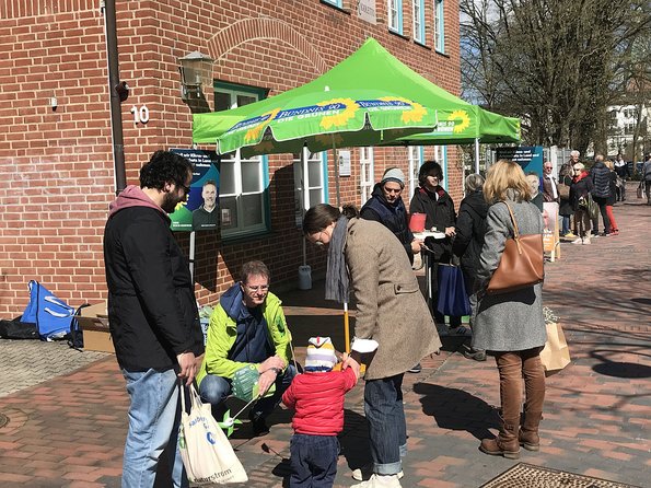 Am 16. April 22 konnte man uns Grüne vormittags auf dem Berliner Platz beim Wahlkampf für die Landtagswahl Schleswig-Holstein antreffen. Solche "Außeneinsätze" fördern den Kontakt zu den Eutiner Bürgern und auch zu den Parteimitgliedern ungemein.