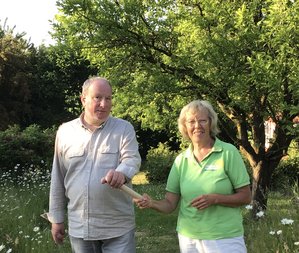 Strahlende Gesichter auf allen Seiten, und die naturnahe Umwelt wird wieder ein kleines bisschen mehr unterstützt. Schon wenige Tage nach der vierten erfolgreichen Sammlung alter Handys konnten die aktiven Grünen Sabine Gall-Gratze, Gerald Tretow und Rolf Dohse heute zwei Insektenhotels an Interessierte übergeben. Beworben dafür hatte sich das Ehepaar Dagmar und Jürgen Kollmann als Betreiber des Altenpflegeheims in der Dorfstraße, dass den Bewohner*innen einen großen Garten mit Pavillon und Blumenbeet bietet.