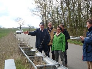 Auch der Naturschutz hat seinen Stellenwert. An der Straße zeigt Robert Muus auf einen 20 Meter breiten renaturierten Streifen an der Curau, Nebenfluss der Schwartau, wo der Naturschutz und die Interessen der Landwirtschaft durch ständigen Dialog - es geht um den Gewinn einer landwirtschaftlich nutzbaren Fläche im Austausch zum Uferschutzstreifen, der dafür extra breit und sogar mit einem Knick abgegrenzt wurde. So gewinnen beide Seiten. Robert Muus betonte die Notwendigkeit dieser Vorgehensweise. Monika Heinold lobte dies Engagement in viele Richtungen und zeigte sich erfreut und beeindruckt.