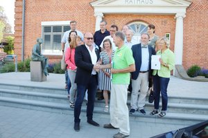 Etliche Stockelsdorfer/innen haben in nur zwei Stunden bei Rolf Dohse und Gerald Tretow für einen Erhalt der Platanen unterschrieben.