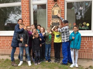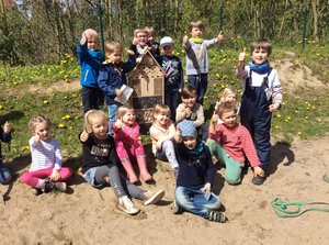 Auch das dritte Insektenhotel wurde an Naturfans übergeben. Hier strahlen die Kinder aus dem "Haus der Gartenzwerge" über das große Exemplar! Auch das dritte Insektenhotel wurde an Naturfans übergeben. Hier strahlen die Kinder aus dem "Haus der Gartenzwerge" über das große Exemplar!