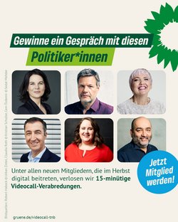 Alle Timings und Teilnahmebedingungen findest du unter: gruene.de/videocall-tnb