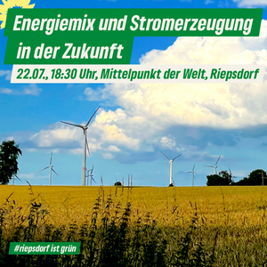 Zu unserer Informationsveranstaltung "Energiemix und Stromerzeugung in der Zukunft" laden wir Riepsdorfer Grüne sämtliche interessierte Bürgerinnen und Bürger der Gemeinden Riepsdorf, Lensahn und Umgebung
