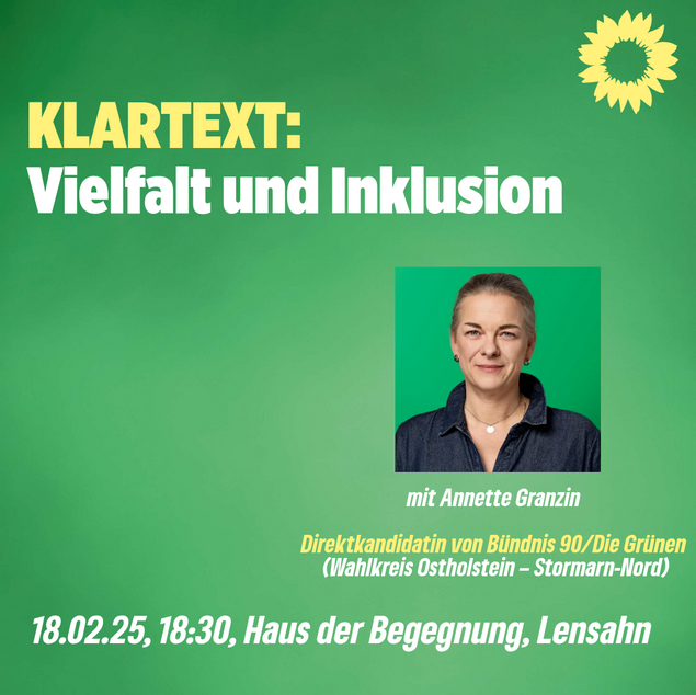 Am 18. Februar 2025 fand in Lensahn die Veranstaltung „KLARTEXT: Vielfalt und Inklusion“ statt. In einer angenehmen, emotional wertschätzenden Atmosphäre und mit gelebter Vielfalt diskutierten rund 30 Teilnehmende konstruktiv über Mobilität, Wohnen und Arbeit für Menschen mit Behinderungen. Trotz der angespannten Wahlkampfzeit bot die Veranstaltung einen offenen Raum für Austausch und neue Impulse, der den Horizont für gesellschaftliche Vielfalt erweiterte. Ein herzliches Dankeschön geht an Hans-Peter Hopp und alle Organisatoren von BÜNDNIS 90/DIE GRÜNEN für diese gelungene Veranstaltung, die Hoffnung auf mehr macht. Weitere Details finden sich im vollständigen Bericht des Kreisverbands