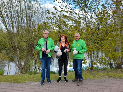 Damit es dem lästigen Müll in der Natur und an Straßenrändern zum Start in den Frühling und vor Ostern so richtig „an den Kragen geht“, haben sich Mitglieder des Bad Schwartauer Ortsverbandes BÜNDNIS/90 DIE GRÜNEN am letzten Samstagmittag, den 27. 03. 2021 am Bahnhof getroffen, um von dort in verschiedene Waldstücke und Parks im Stadtbereich „auszuschwärmen“. Zur Freude des OV-Vorstandes hat der UWB die Einladung zur Beteiligung an der Aktion angenommen und sich ebenfalls mit einer bereits „gut eingearbeiteten“ Gruppe an die Säuberung eines bestimmten Areals herangemacht.