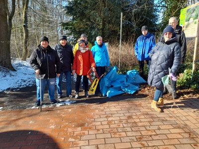 Obwohl die Anzahl der TeilnehmerInnen doch sehr "überschaubar" war, spielte uns das schöne Wetter in die Karten! Guter Stimmung wurde Sack für Sack im Bereich des Großen und Kleinen Parksees mit den unterschiedlichsten Müll-Varianten gefüllt - von unzähligen Dosenverschlüssen, Tetrapacks, Flaschen, Pappbechern, verschiedenen Plastikteilen bishin zu halbverrotteten Textilien usw. usw.. Mit Hilfe zweier "Obstpflücker-Stangen" wurden außerdem angelnder Weise die vom Ufer erreichbaren, im Wasser schwimmenden Müllteile entfernt. Den verbeibenden Teilen müsste sich der Bauhof dann vom Boot aus nähern...In jedem Fall sind alle Teilnehmenden dem Vorhaben gerecht geworden, den Unrat in dem Areal vor der kalten Jahreszeit zu entfernen und dem Naturbereich wieder seine Schönheit zurückzugeben.. Wir haben uns übrigens auch sehr über die Teilnahme von Michael Thole vom Bürgerverein gefreut, der ebenfalls routiniert & engagiert seinen tollen Beitrag leistete. Die spätere Kaffee- und Teerunde im nahegegelegenen Café stellte eine sehr gemütliche Abrundung der Aktion dar.