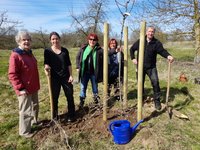 Vor einigen Tagen startete der Ortsverband der Bad Schwartauer GRÜNEN eine schon „traditionelle“ Frühlings-Baumpflanzaktion. Dieses Mal stifteten die GRÜNEN zwei schöne von Baumfachmann Lüder Garms ausgewählten Kirschbäume. Zur Freude von Antje Gräfingholt und Matthias Stähle vom NABU wurden diese gemeinsam mit weiteren Beteiligten auf der vom NABU betreuten Streuobstwiese am Osterkampsredder eingepflanzt. Es handelt sich hierbei um zwei verschiedene Sorten – zum einen um die „Große Schwarze Knorpelkirsche“ - zum anderen um die Vogelkirsche „Sunburst“.