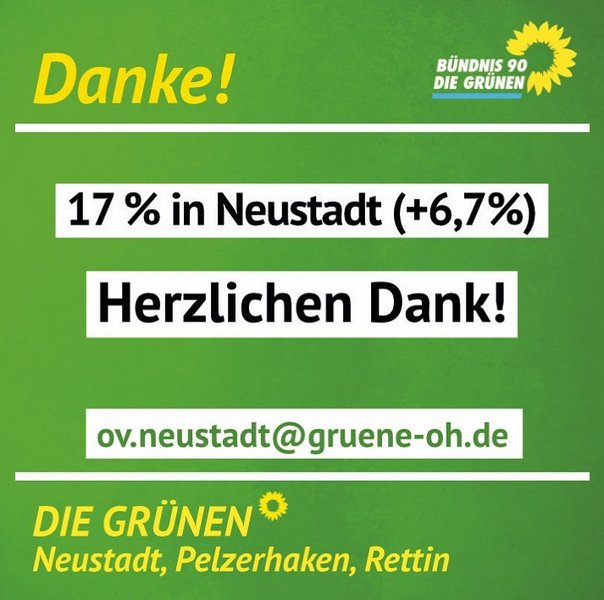 Dieses Ergebnis bestärkt uns, weiterhin für ein nachhaltiges, lebenswertes Neustadt einzutreten.