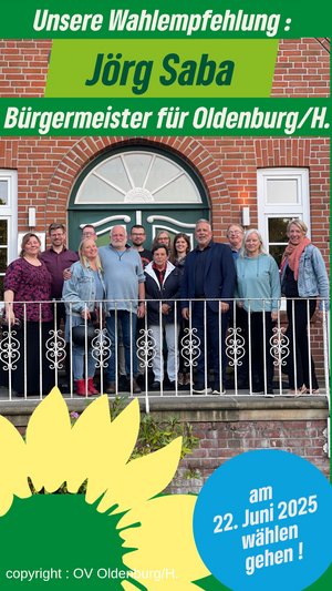 am 22. Juni ist Bürgermeisterwahl in Oldenburg in Holstein und dazu möchten wir von BÜNDNIS 90/DIE GRÜNEN Ihnen unsere eindeutige Empfehlung für Herrn Jörg Saba aussprechen.
