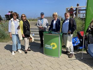Bei wunderschönem Wetter und mit Blick vom Kurparkhaus auf die Großbaustelle Seebrücke trafen sich Grüne und Gäste aus Scharbeutz, Timmendorfer Strand und Eutin zu einem gemeinsamen politischen Frühstück.