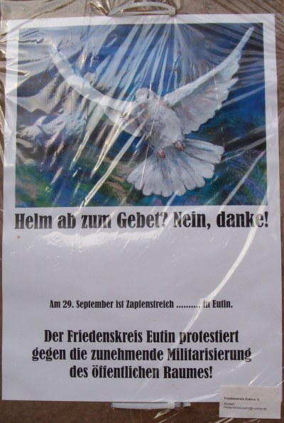 Sehr geehrter Herr Pastor Tamchina, sehr geehrte Damen und Herren im Friedenskreis, wir danken für Ihren Diskussionsbeitrag aus Anlass des Großen Zapfenstreichs in Eutin.
